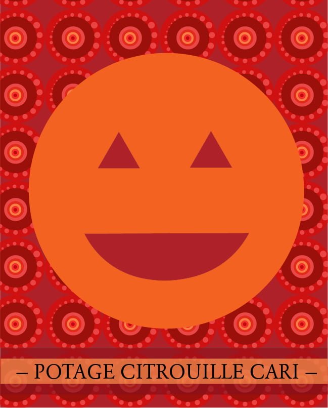 Disposer des cubes en final sur le potage de citrouille au cari. Placer des cubes de citrouille de 5 cm sur une plaque. Les arroser d’un filet d’huile d’olive, de jus de citron vert et d’une pincée de mélange de cari rouge. Saler, poivrer. Cuire au four à 200 °C (400° F), jusqu’à ce que la pointe d’un couteau pénètre facilement les cubes.