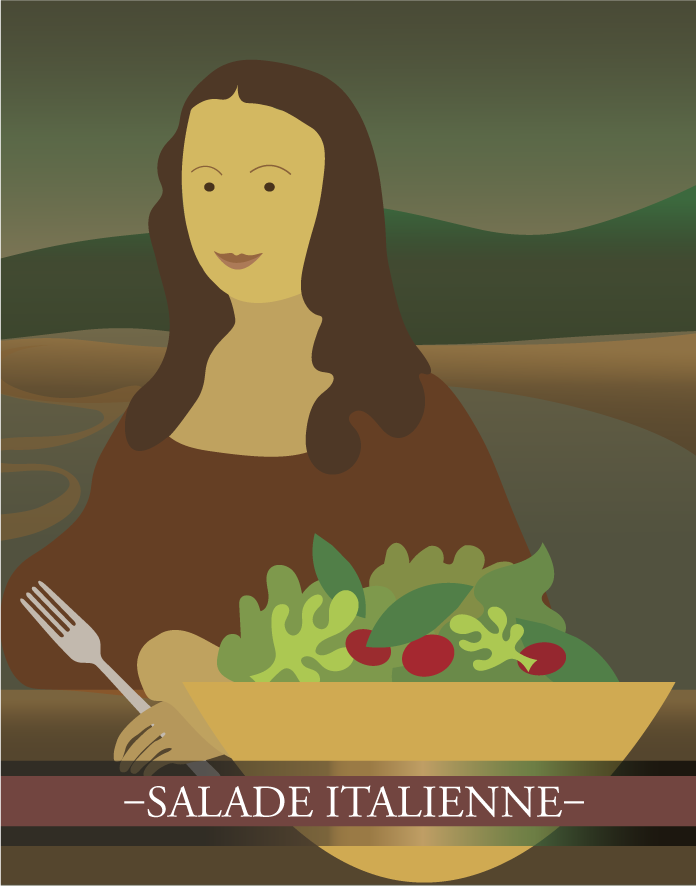 Végétarien, Léonard De Vinci se régale de fruits, de légumes, de céréales, de pâtes et de salade italienne.